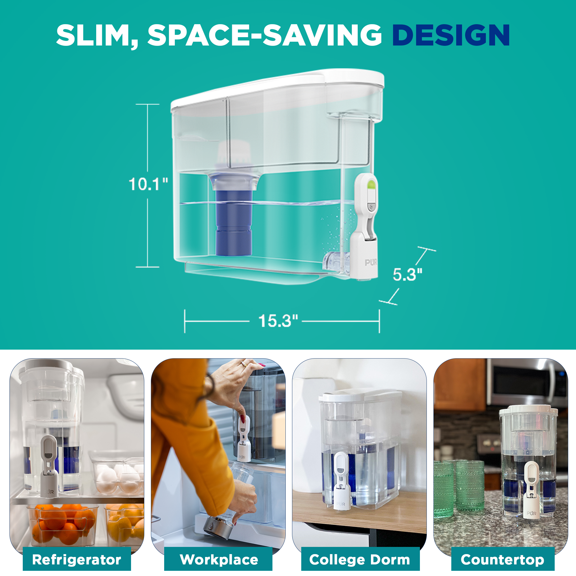 Enjoy better tasting water with the PUR PLUS 30-Cup Water Filter Dispenser (available in 2 colors), which has been engineered for superior, 3-in-1 powerful water filtration to reduce over 20 chemical & physical substances that tend to cause bad taste and odor in your drinking water. Each Genuine PUR PLUS dispenser filter is certified for up to 40 gallons, or 2-months of use.