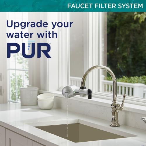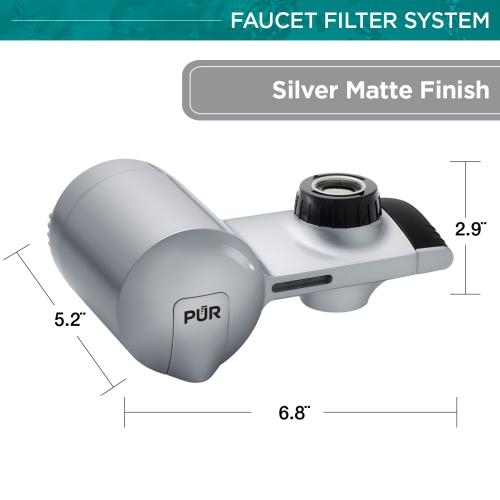 Enjoy cleaner, filtered water from your faucet with this PUR PLUS horizontal faucet system with Silver Matte finish. This water filtration system can be easily attached to standard faucets without the use of tools. It allows you to easily switch the kitchen faucet attachment to filtered mode when you want cleaner, great-tasting water. The horiztonal faucet filtration system is not designed for use with pull-out or handheld faucets.