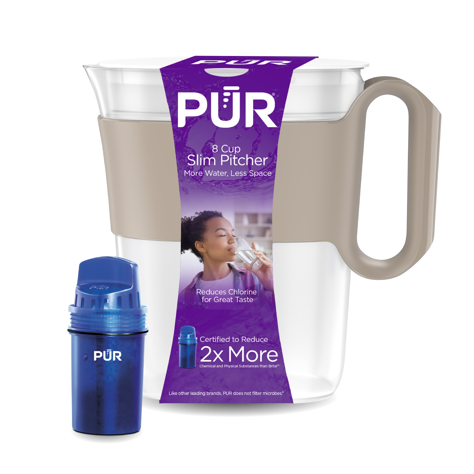 The PUR 8 Cup Slim Water Filter Pitcher is a compact, budget-friendly way to enjoy cleaner, better-tasting water. It fits easily in tight spaces like mini fridge doors and comes with a redesigned handle for easy, precise pouring. Pair it with the PUR 3-Pack Filters (PPF900Z3) for up to 6 months of fast, effective filtration.*