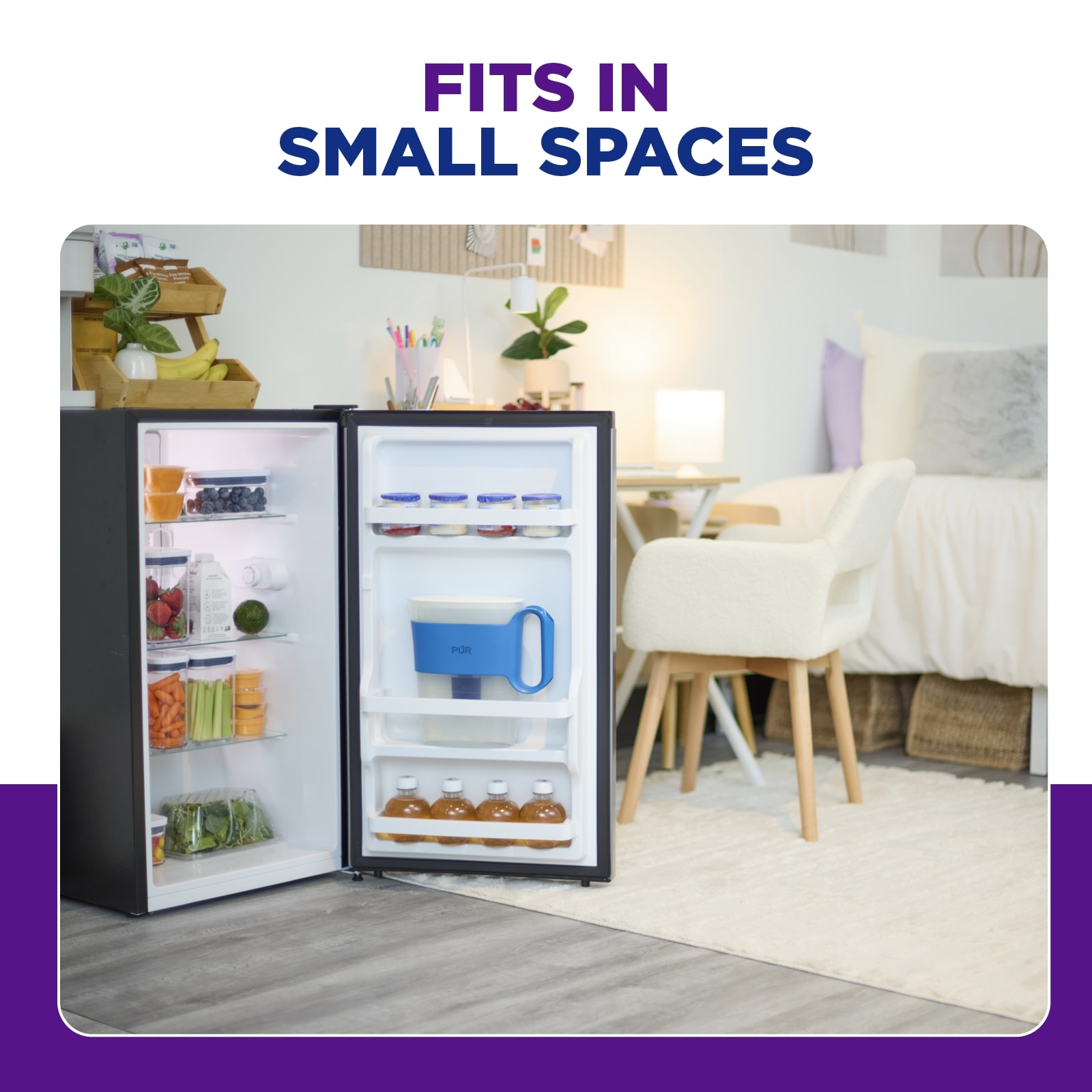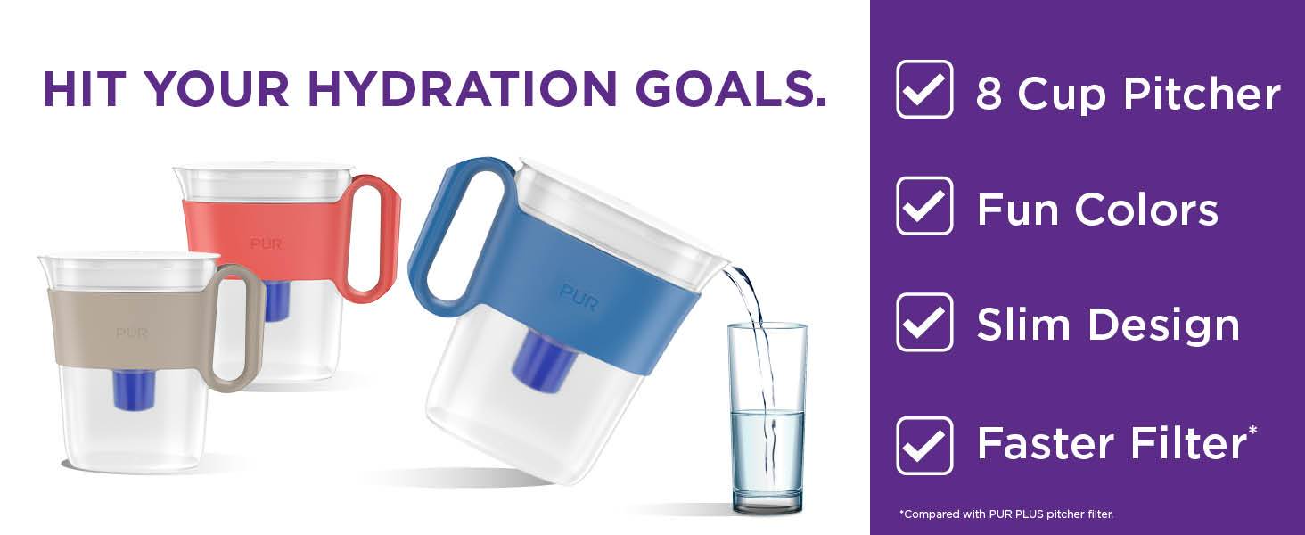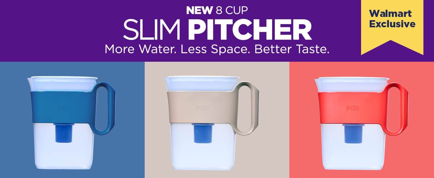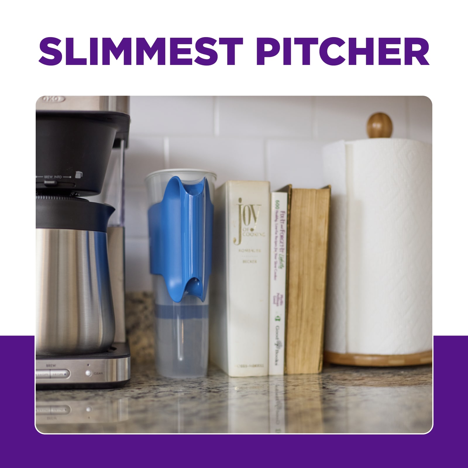 Enjoy cleaner, great-tasting water with the PUR 8 Cup Slim Water Filter Pitcher. Perfect for dorm rooms, mini fridges, and small kitchens, this compact water filter pitcher saves space without sacrificing capacity—holding 33% more water than standard small pitchers.