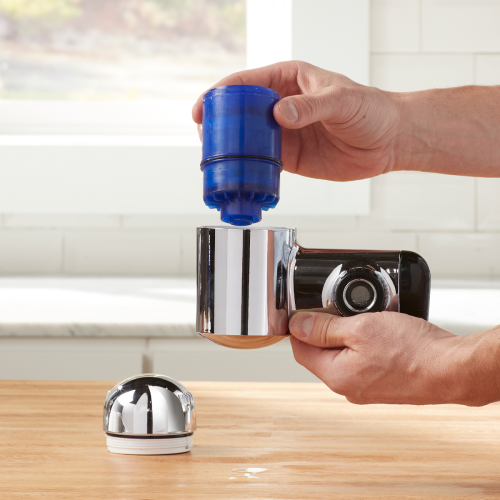 To install or replace the filter remove the device from your faucet by unscrewing the threaded mounting nut.