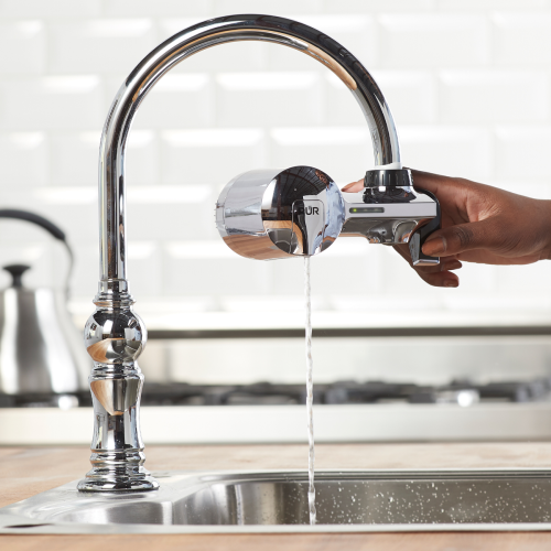 - Turn your faucet on and turn down the lever for filtered water. The PUR Faucet Filtration