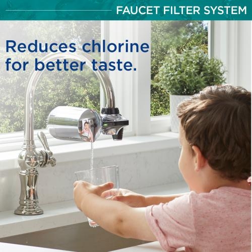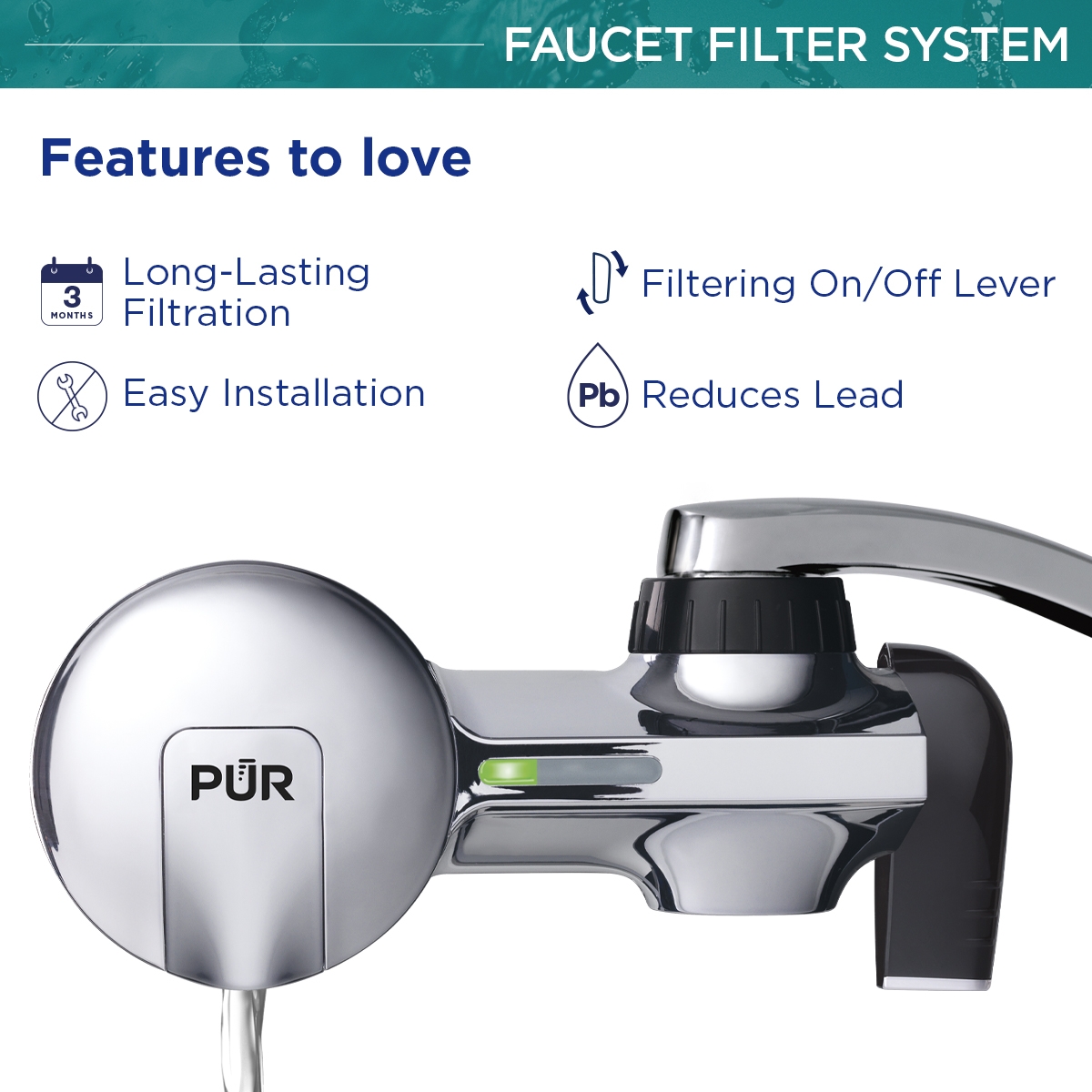 Enjoy cleaner, filtered water from your faucet with the PUR PLUS Faucet Filter System in Chrome finish. Certified to reduce lead and 10x more contaminants than Brita’s® leading pitcher filter.1,2 It is easy to attach and includes a Mineral Core™ Filter for great taste.