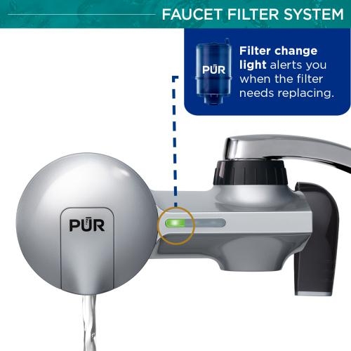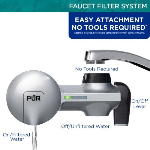 Enjoy cleaner, filtered water from your faucet with this PUR PLUS horizontal faucet system with Silver Matte finish. This water filtration system can be easily attached to standard faucets without the use of tools. It allows you to easily switch the kitchen faucet attachment to filtered mode when you want cleaner, great-tasting water. The horiztonal faucet filtration system is not designed for use with pull-out or handheld faucets.
