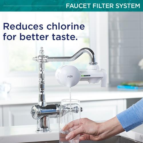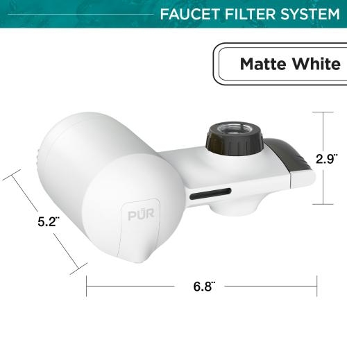 Enjoy cleaner, filtered water from your faucet with this PUR PLUS horizontal faucet system with Matte White finish. This water filtration system can be easily attached to standard faucets without the use of tools. It allows you to easily switch the kitchen faucet attachment to filtered mode when you want cleaner, great-tasting water. The horiztonal faucet filtration system is not designed for use with pull-out or handheld faucets.