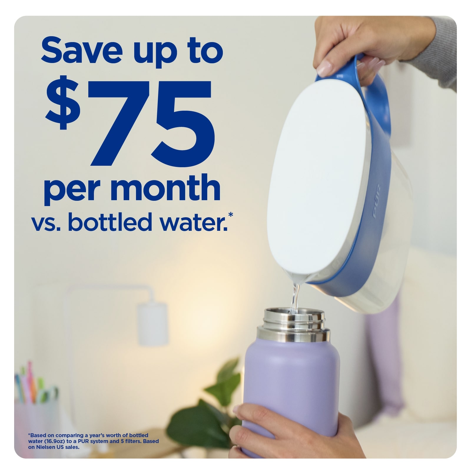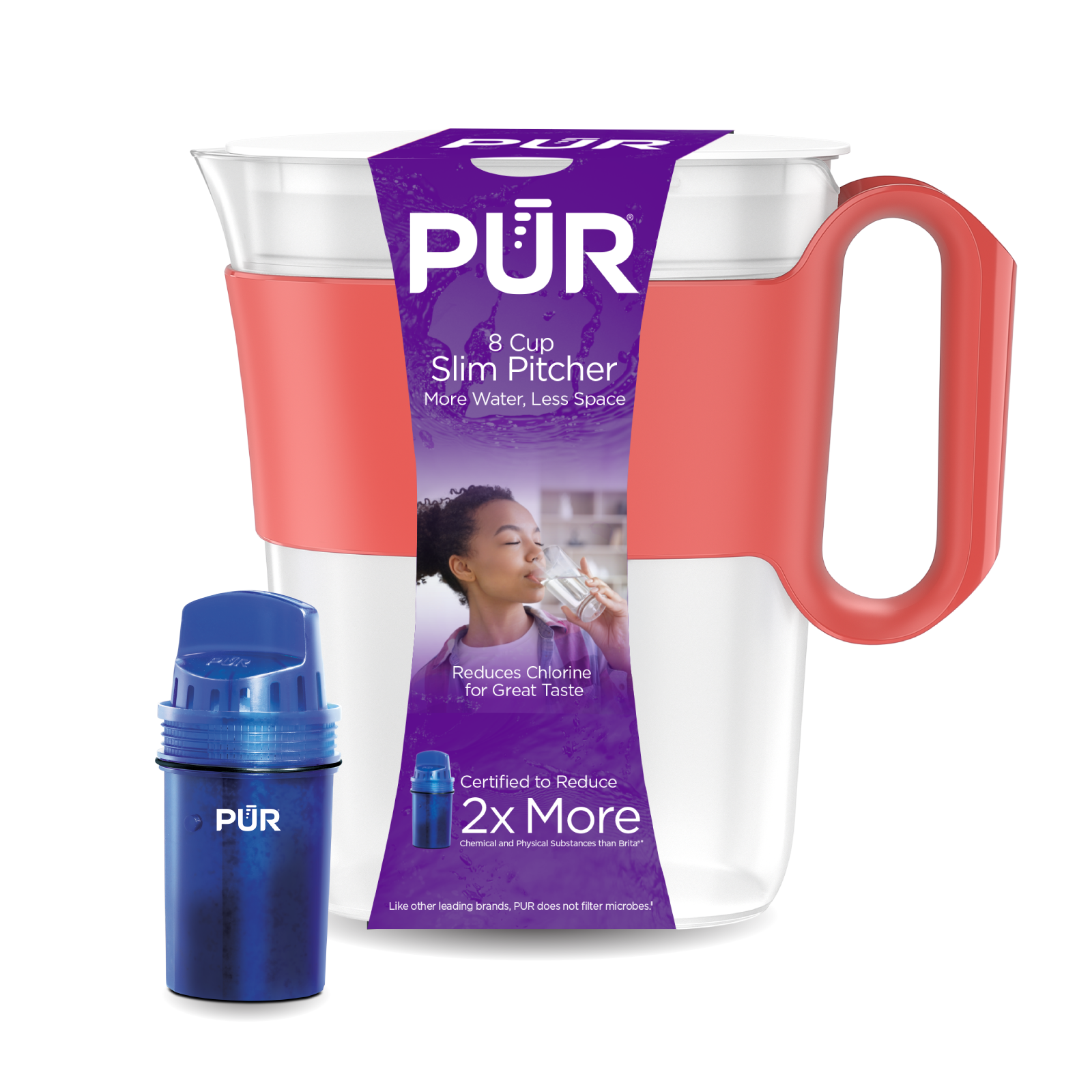 The PUR 8 Cup Slim Water Filter Pitcher is a compact, budget-friendly way to enjoy cleaner, better-tasting water. It fits easily in tight spaces like mini fridge doors and comes with a redesigned handle for easy, precise pouring. Pair it with the PUR 3-Pack Filters (PPF900Z3) for up to 6 months of fast, effective filtration.*